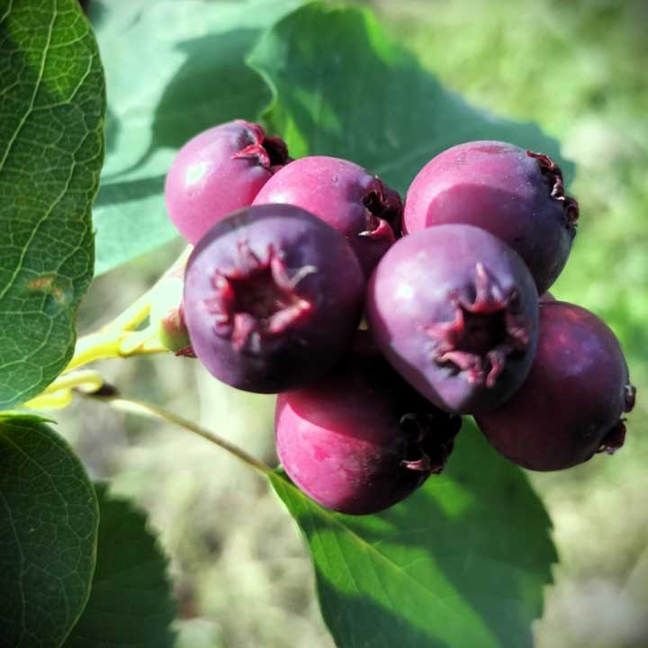 Un arbuste rustique mellifère ornemental, flamboyant à l’automne, aux baies noires d‘été sucrées appréciées des oiseaux … comme des humains : crues, cuites … Les fruits sont excellents, aux notes de cerises et myrtilles. Il existe plusieurs cultivars : l’amélanchier ovalis que l’on trouve à l’état sauvage dans les coteaux calcaires asséchants jusqu’autours de Chambéry, l’amélanchier du Canada, l’amélanchier de Lamarck originaire d’Amérique du Nord aux fruits sucrés à consommer comme des friandises, ou encore l’amélanchier à feuilles d’aulne dont sont issues la plupart des variétés sélectionnée pour la production fruitière pour la taille du fruit et leur saveur. Des amélanchiers sont disponibles à la pépinière issus de semis pour un port buissonnant/arbustif, ou encore greffé sur sorbier des oiseleurs ou aubépine pour un port arboré plus défini.