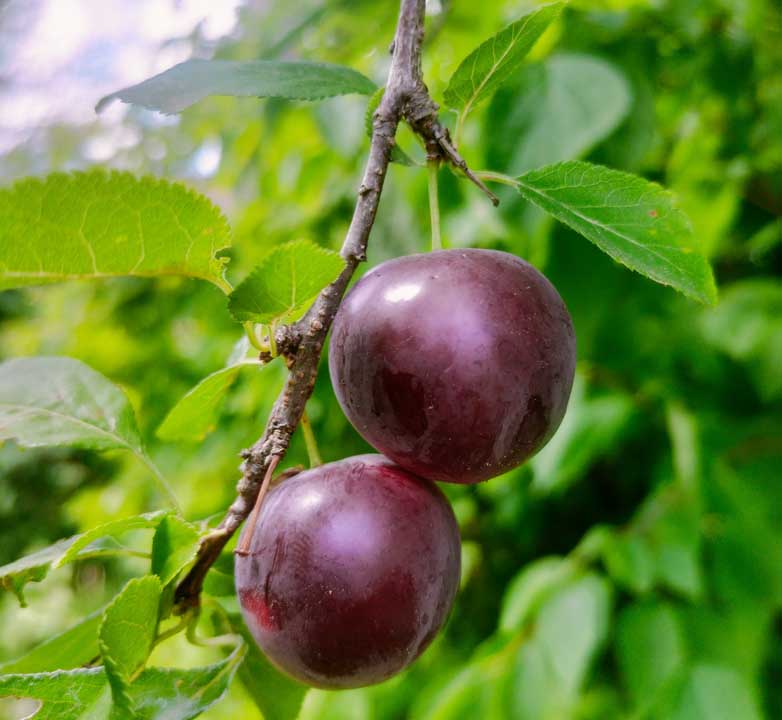 Le prunier myrobolan est un arbre fruitier sauvage très rustique à croissance rapide. C’est l’un des premiers arbres européens à fleurir. Ses fruits sont de la taille d’une grosse mirabelle, acidulés, jaunes, rouges ou violets selont le hasard de la génétique, à croquer ou transformer. Il drageonne peu, supporte de nombreuses conditions. Il est mellifère, ornementale et apprécié des oiseaux. Pouvant mesurer jusque 5 mètres de haut, il se plait également en haie comestible. Il sert de porte greffe pour les fruits à noyaux.
