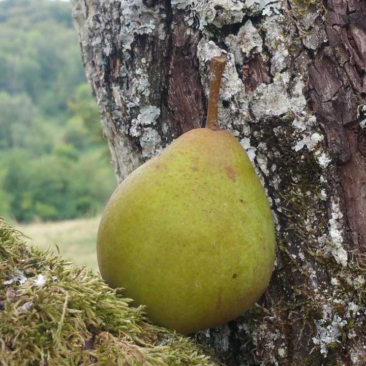 Les premières traces de culture de cet arbre remonte à au moins 4000 ans en Chine. Les romains ont ensuite joué un rôle prépondérant dans la domestication du poirier en greffant et multipliant les semis de hasards les plus chanceux et les plus gouteux. Jusqu’à la renaissance les fruits étaient surtout durs et consommés cuits. Les variétés fondantes sont apparues ensuite et ont donné naissance aux variétés anciennes à croquer actuelles. En Chartreuse et en Savoie, les vieux arbres dressés qui ornent encore nos paysages et ont parfois plus de 100 ans sont principalement des poires à cuire ou à transformer en jus. Ces arbres très rustiques peuvent se retrouver jusque 1200 mètres d’altitude. Le poirier à une architecture dressée vers le ciel, ce qui lui permet de ne pas casser sous le poids de la neige en hiver. Ils aiment les sols profonds, limoneux ou silico argileux, sans trop de calcaire.
