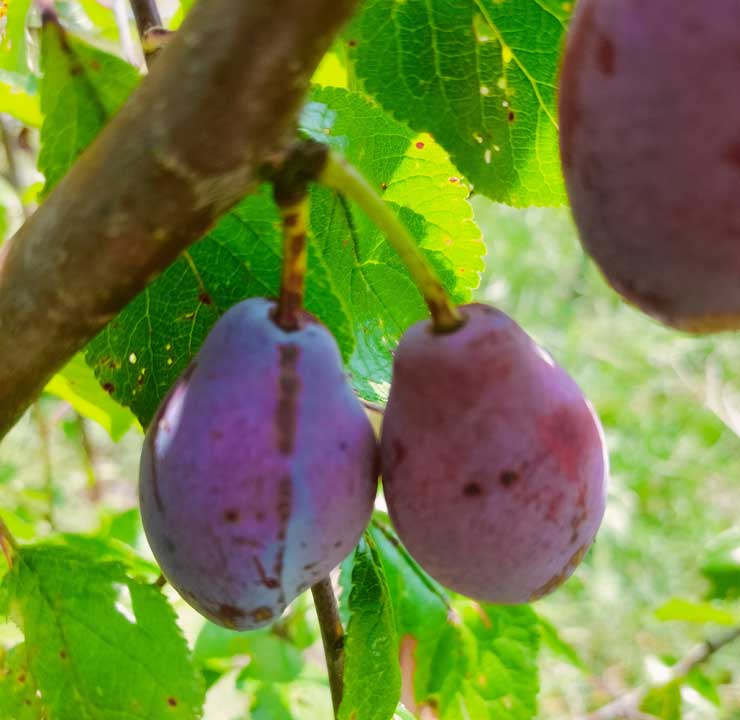 Les pruniers sont des arbres rustiques, peu encombrants, qui s’accommodent de nombreux sols même les plus ingrats. Pour peu qu’ils soient correctement pollinisés (exemple de bon polinisateurs : D’ente, Reine Claude Bavey ou d’Oullins, Quetsche d’Alsace, Ana Spath …), ils assurent en 5 ans une production généreuse : quelle belle récompense, en été et au automne, que ces fruits chargés de soleil, sucrés et gorgés d’un jus savoureux !